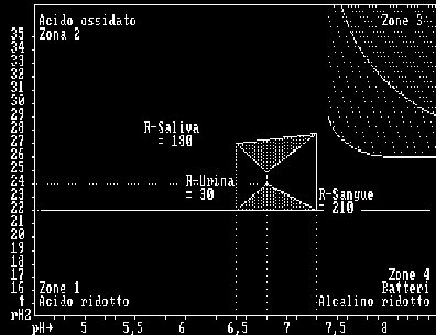 Questo è un esempio del più significativo dei diagrammi dell'esame di Vincent. In questo caso viene rappresentata la situazione di una persona in perfetta salute. Da notare, in alto a destra, la zona del cancro (reversibile, meno intensa; irreversibile, più intensa).